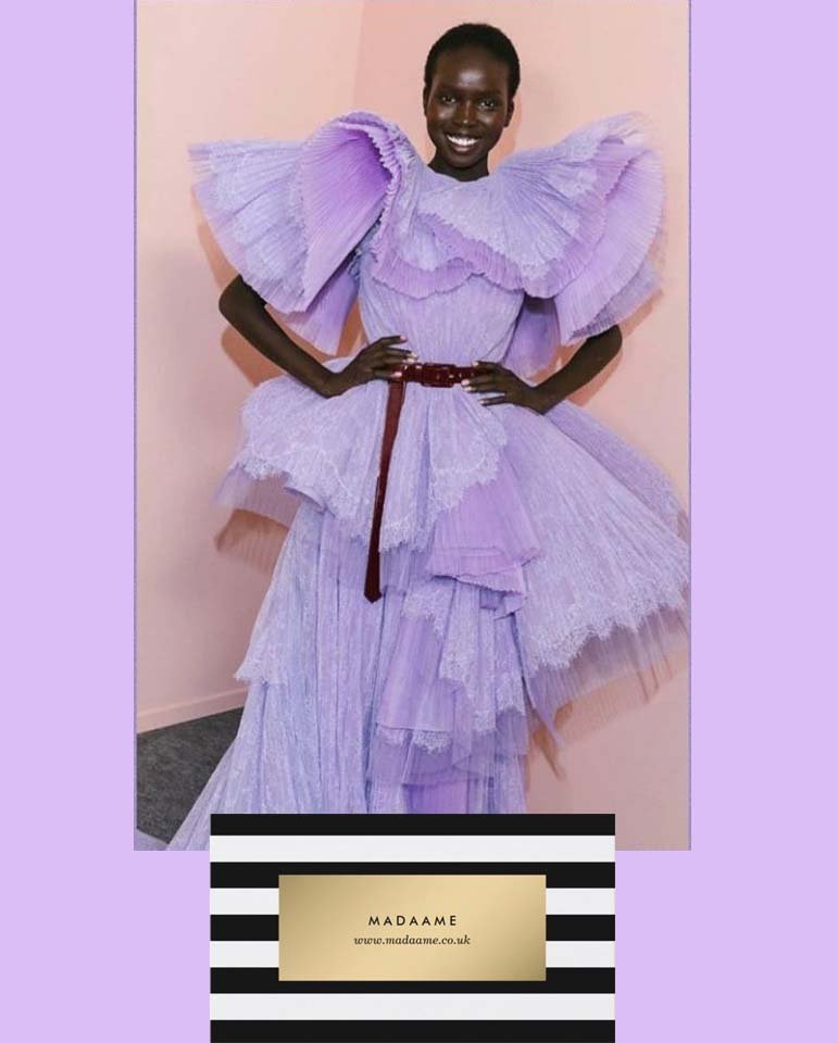 Lavendar Evening Dress With Frilly Shawl Cape
