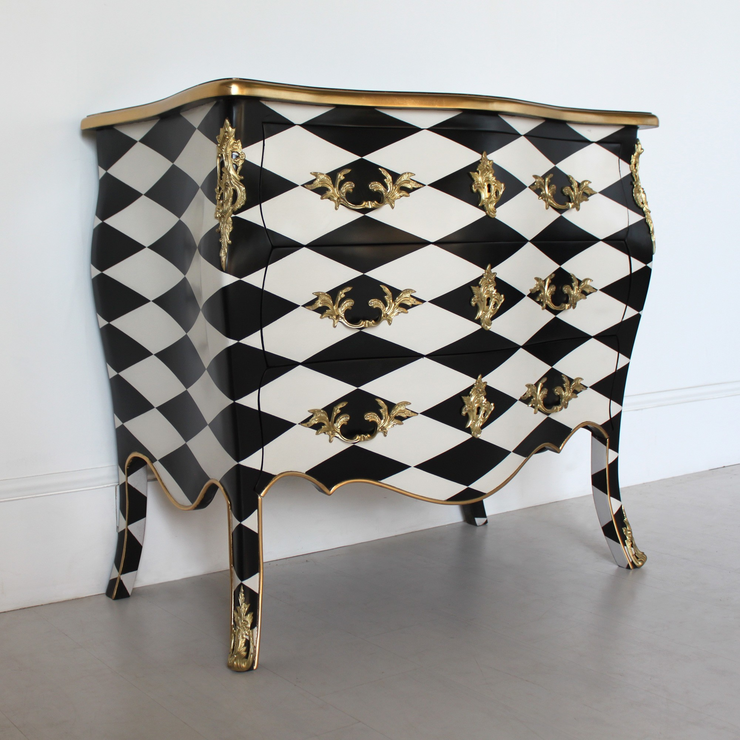 This French Harlequin Chest of Drawers is definitely a statement piece. The chest is gorgeously handmade using mahogany wood, and a sturdy and reliable piece of wood that’s guaranteed to last for a long time.
