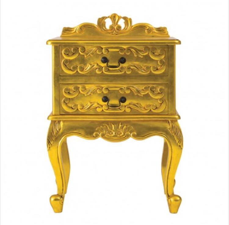 Once carved the Rococo Gold Leaf Bedside Tables are painted by in gold by hand and then metal leaf is applied to create a truly unique item, no two will ever be the same.