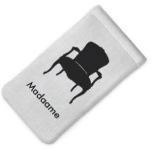 Custom printed glasses case featuring Madaame branding on both sides.