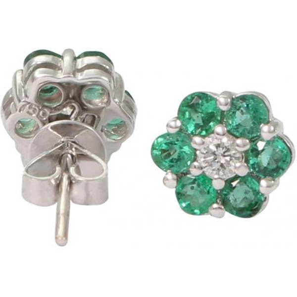 18 kt white gold emerald and diamond earring