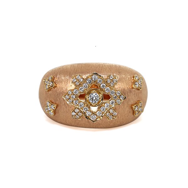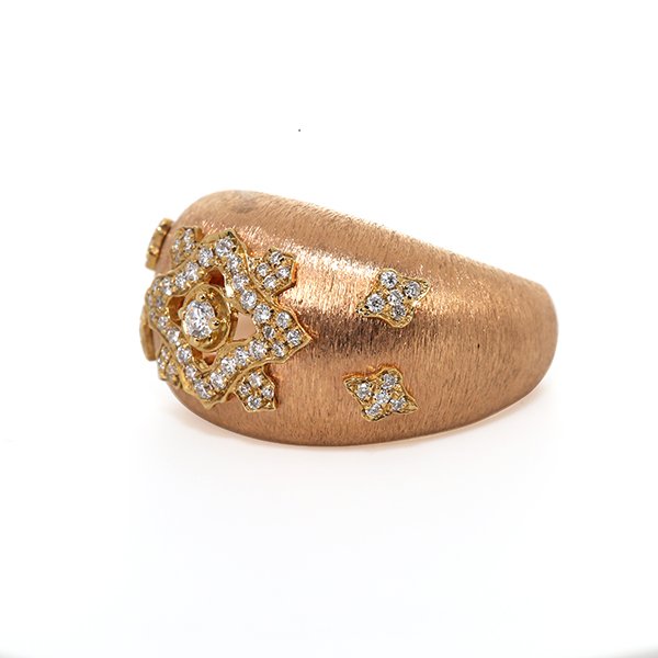 The amazing shine of gold diamond ring in a combination of 18kt rose gold and diamonds mounted on the setting makes this ring perfect for some special occasions.