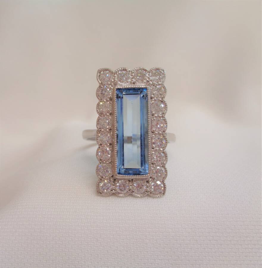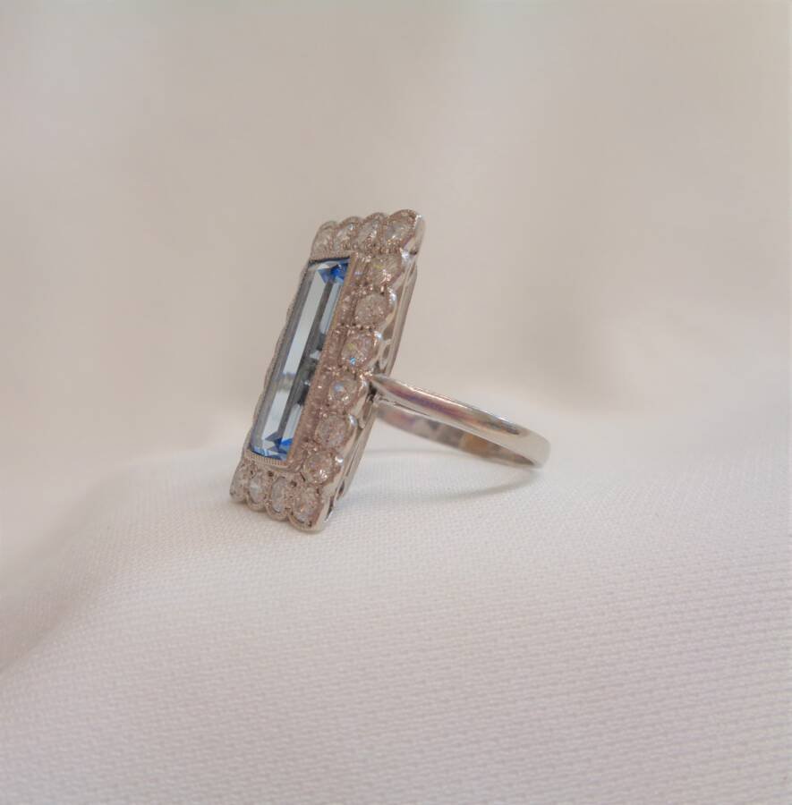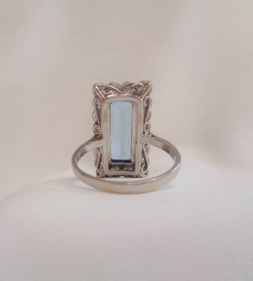 Vintage Large Aquamarine and Diamond Panel Platinum Ring