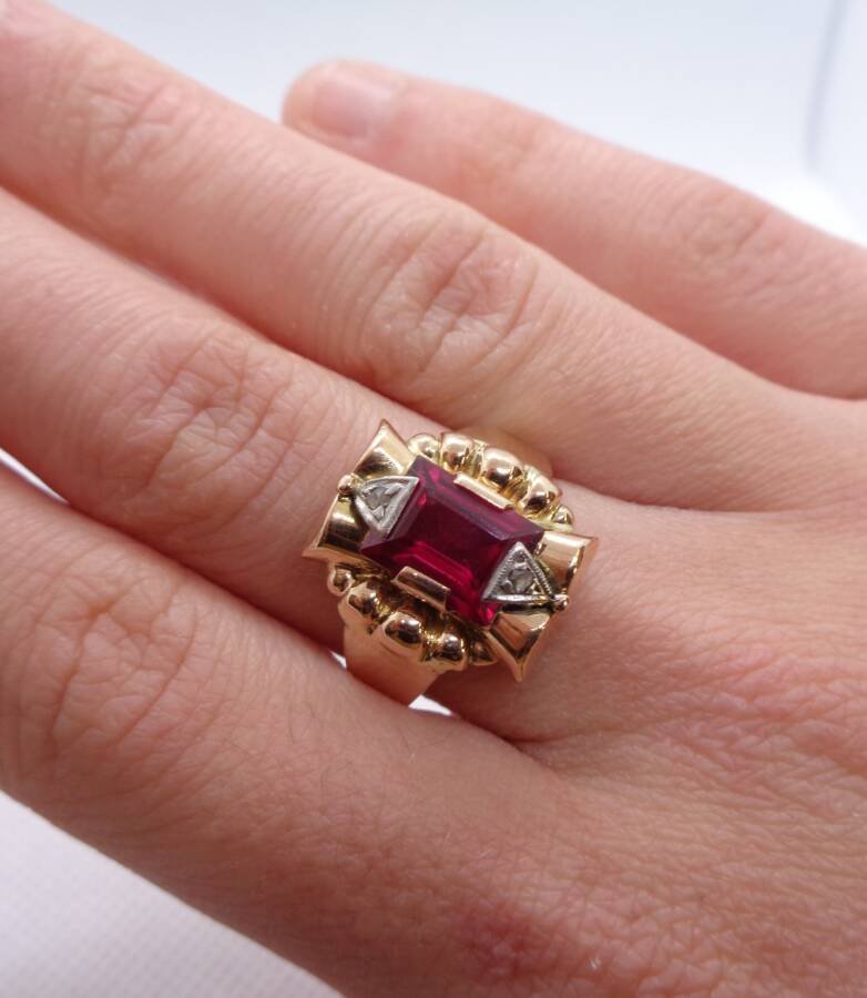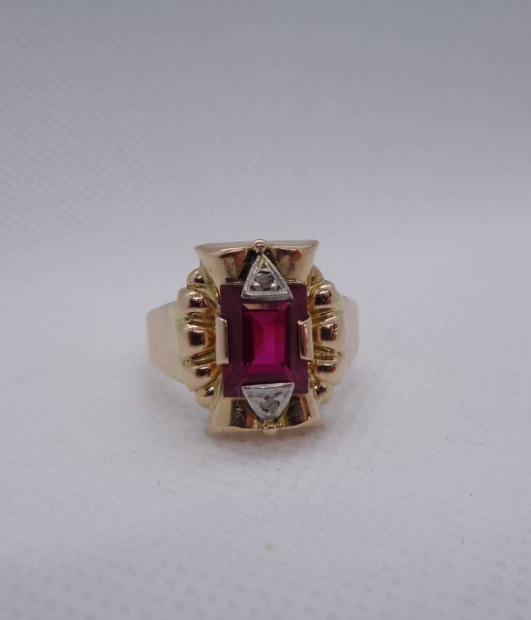 Vintage Ruby and Diamond Ring 750 (18ct) Rose Gold