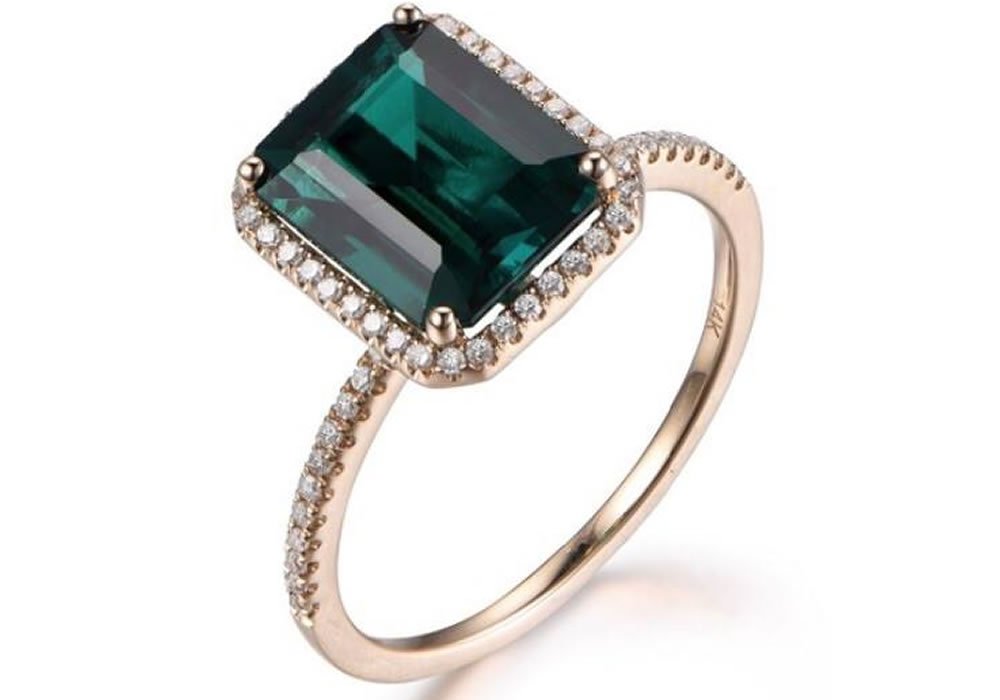 Wedding Band Halo Ring With Green Emerald Gem Stone