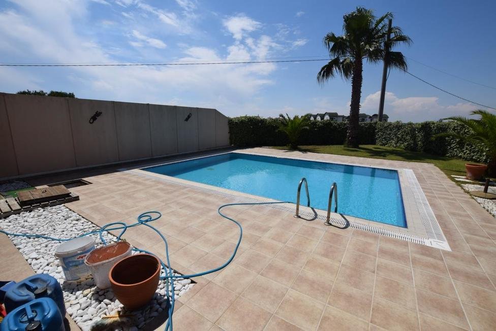 Our private and sheltered holiday villas in Belek are in a quiet and peaceful location and 24 hours security.The site consists of communal and private pool villas. 4 bedrooms and 3 bathrooms with all necessary amenities for your holiday. The private garden on the back has a large area for eating and sunbathing.