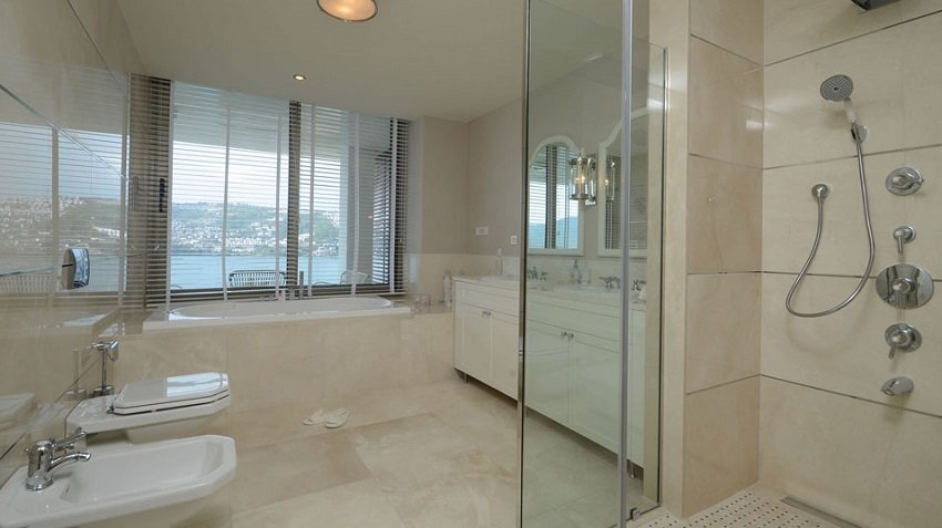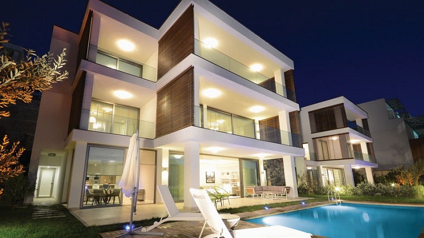 Bodrum, Gundogan seafront detached villas for sale with private swimming pool. Private beach, jetty, spa, restaurants. 24/7 security on site. Perfect for all year living with full sea view. Modern design triplex villas, two different types available. ready to move in.