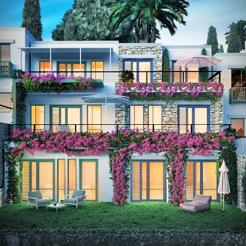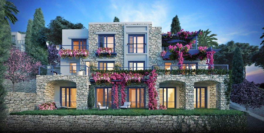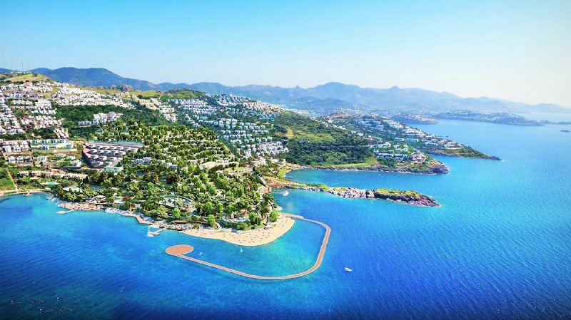 Turkey real estate, new development for sale in Yalikavak bay, a sea front seaside complex with hotel services and beach and restaurants. You can buy with 30% down payment and rest you can pay in 24 months. For luxury holidays,investment or high rental income. apartments and villas available.